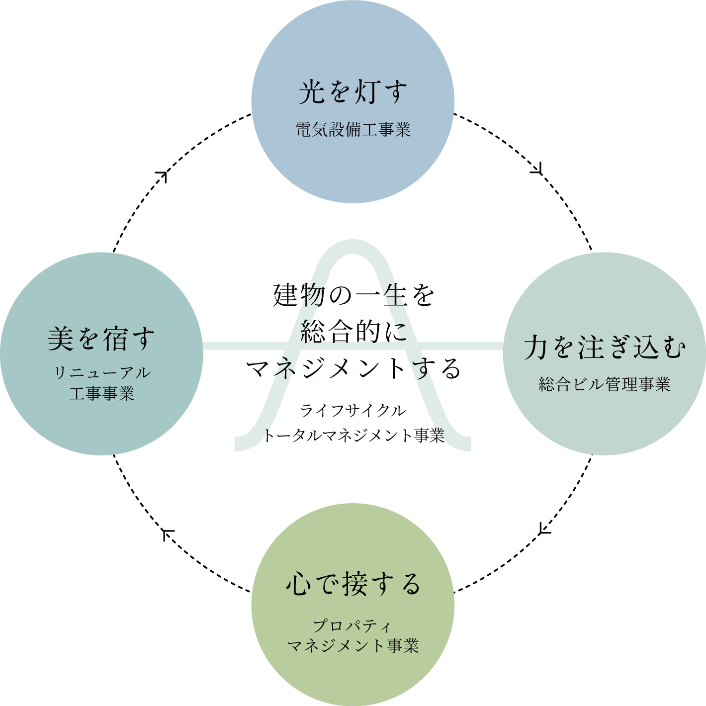 プロパティマネジメントの4つの事業を柱とし、